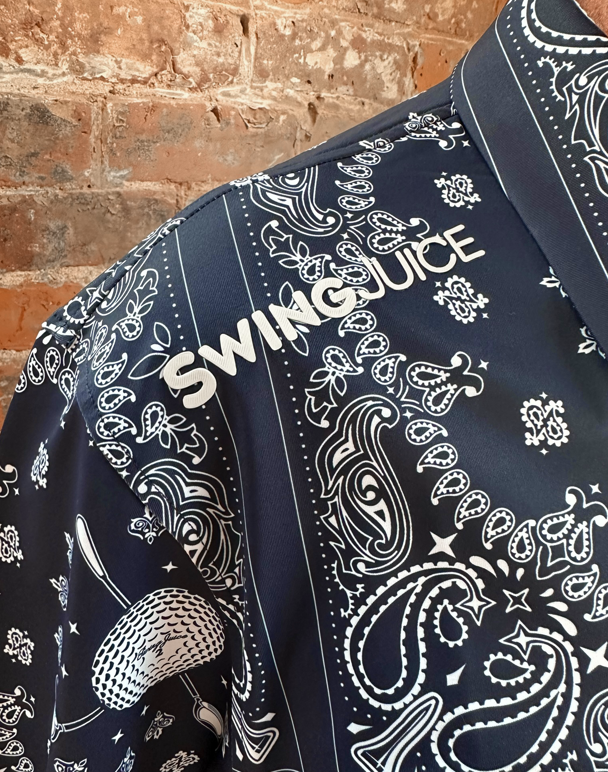 - Bold bandana style with golf imagery