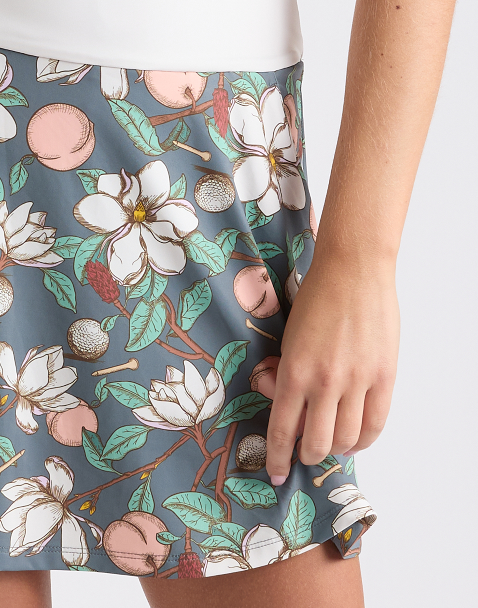 Bold, vibrant, and performance-driven, the Georgia On My Mind Women's Skort brings floral flair to your spring wardrobe. Designed with a flattering fit and lightweight materials, this skort ensures unrestricted movement and all-day comfort. Attached inner shorts provide confidence and convenience with an internal pocket to hold your essentials.